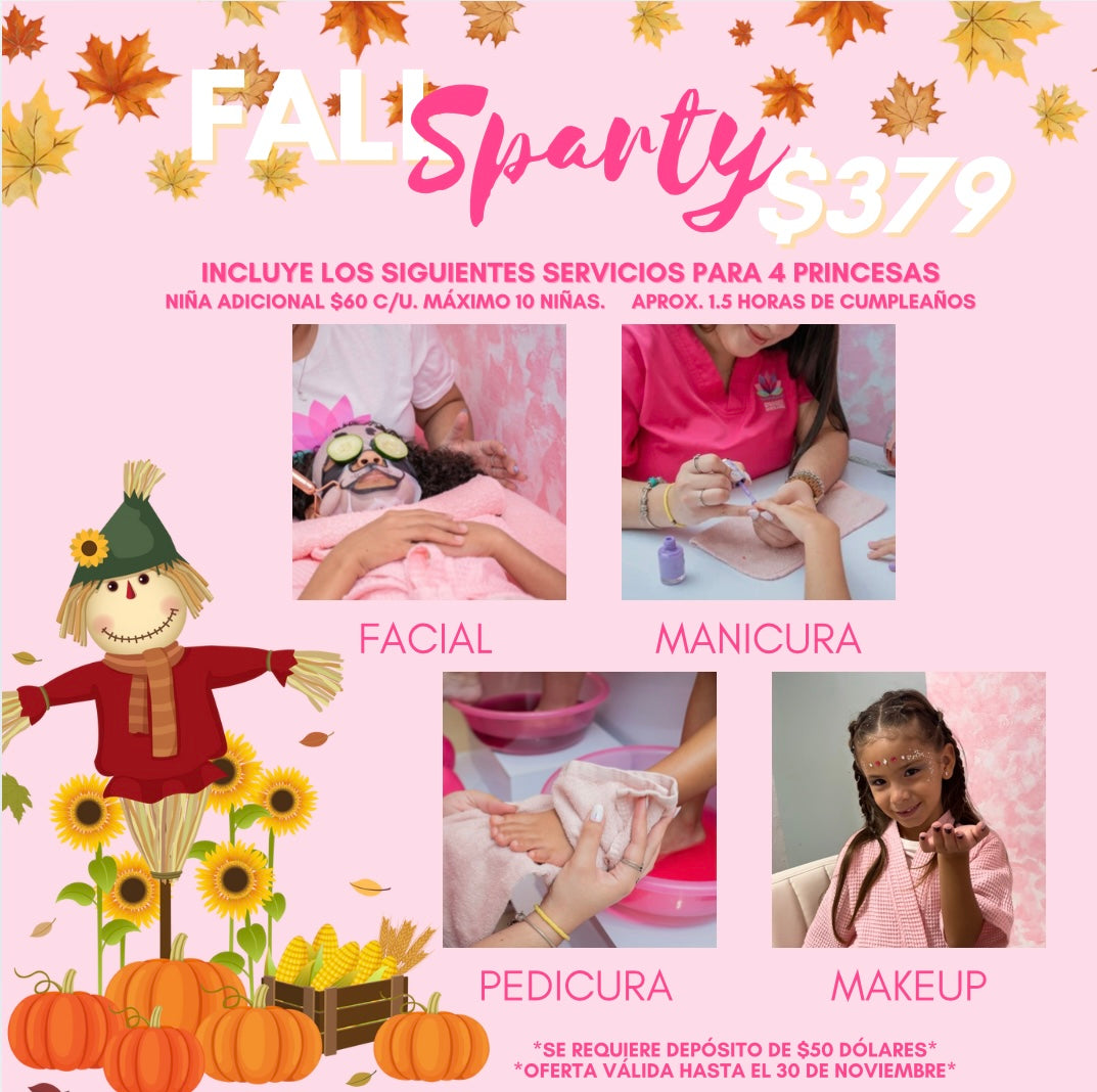 Todos los servicios mencionados para 4 NIÑAS. NIÑA ADICIONAL $90 C/U. MÁXIMO 10 NIÑAS.